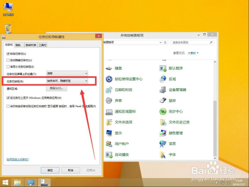 如图,win8系统默认使命栏图标始终是归并的小图标