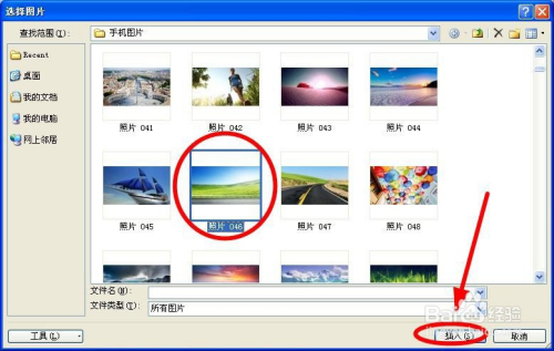 按照筹办好的图片的路径找到并选中后,单击“插入”