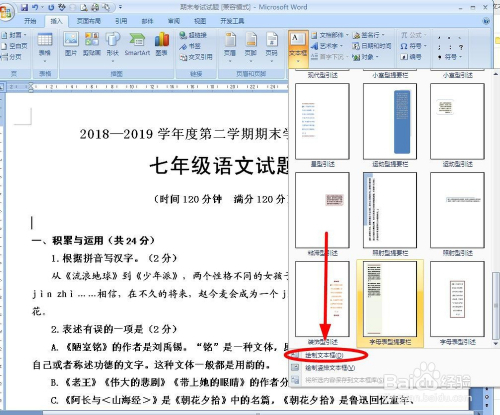 找到菜单栏中“文本”选项组中的“文本框”单击