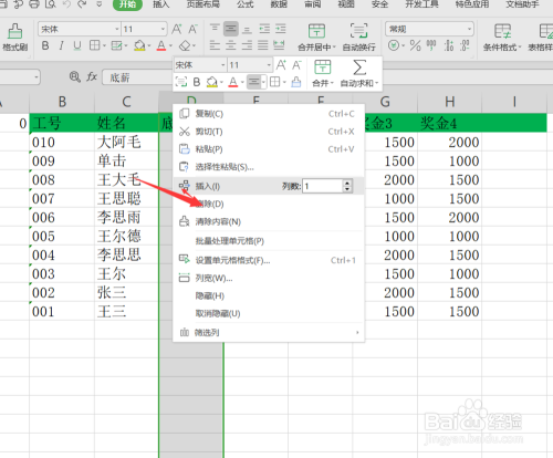 接着我们选中一个单位格,右击,插入一个纵标的目的单位格。