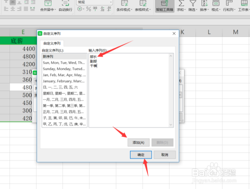 在自界说序列中,我们输入序列别离为部长副部干事,然后点击添加,最后点击确定即可。