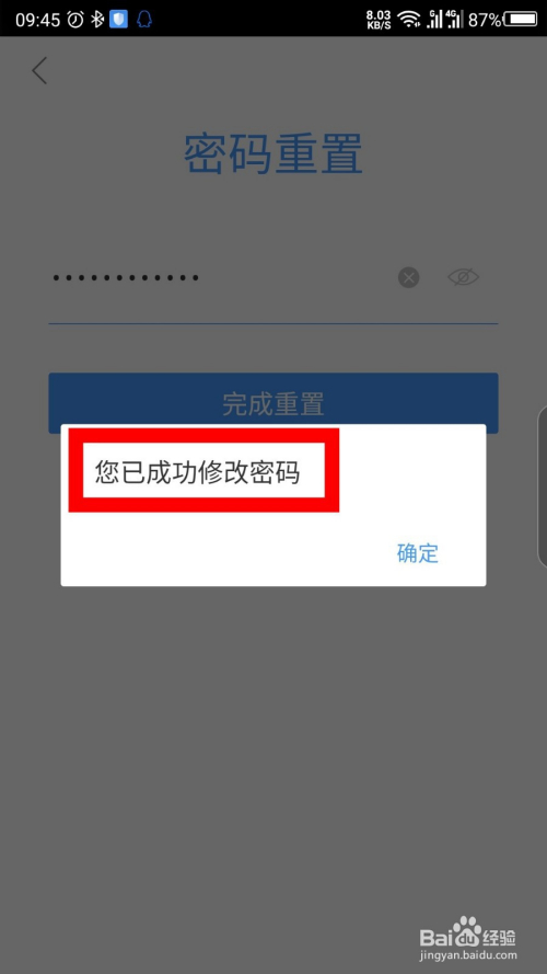 新密码设置当作功后,能看到提醒,你已当作功点窜密码。如图所示