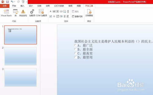 第一步:打开一个需要设置打钩按钮的ppt。
