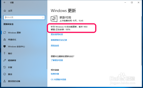 进入Windows 设置 - 更新和平安,点击查抄更新,可以看到:
