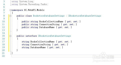 添加设置装备摆设模子。模子设置装备摆设本家儿要两个方面,一个是数据库毗连设置装备摆设,这个本家儿要其实ppsettings.json 添加以下数据库设置装备摆设值 。然后是利用以下代码将 BookstoreDatabaseSettings.cs 文件添加到 Models 目次 然后在StartUp里面添加依靠注入