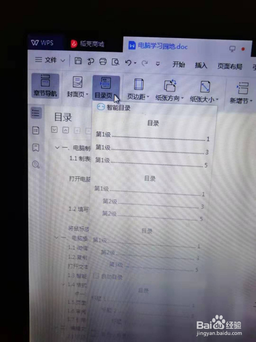 三、点击“目次页”左边三角框。