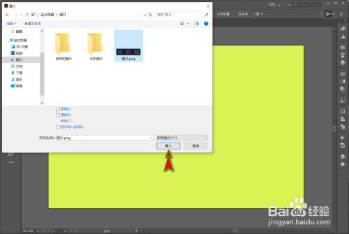 接着便会弹出“置入”弹窗,在该弹窗中我们找到并选中本身电脑当地筹办好的图片。