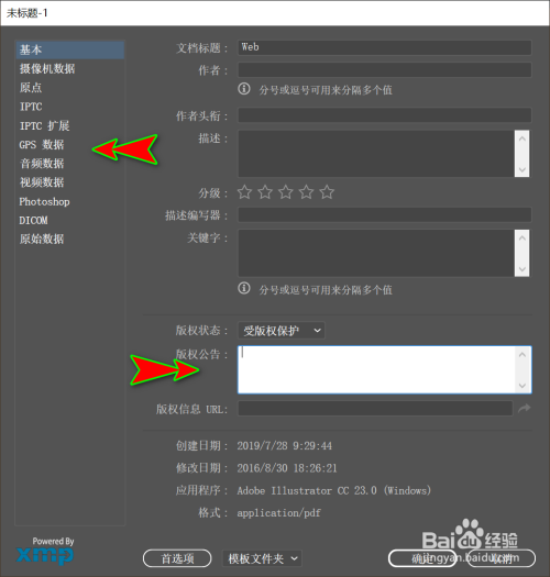 在“根基”选项中,我们可觉得本身的文档添加一些根基的信息,然后再“版权状况”信息中将其设置为“受版权庇护”状况。