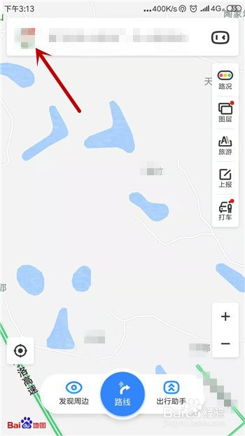 点击打开百度地图,在地图首页里点击左上角的头像。
