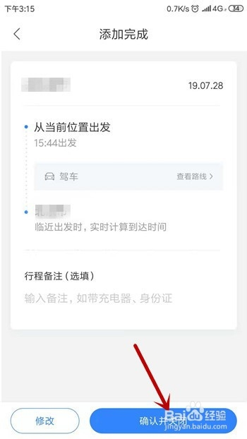 添加行程界面中确认一下行程的时候是否准确,然后点击【下一步】。