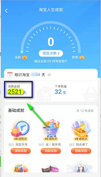 这时辰就可以看到你在淘宝花的金额以及下单数目,如下图所示