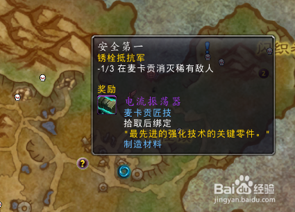 在麦卡贡打怪拾取的白色垃圾,30个[硬化弹簧],10个[淬火装甲],5个[机械设备套件],可以组合当作一个[一捆可收受接管的零件],可以触发一个埋没使命。当收受接管器头上的问号酿成蓝色的时辰,就不再奖励声望了。