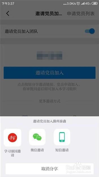 - 对开通了学习强国的老友可以直接邀请插手,没有的经由过程微信或者短信邀请。