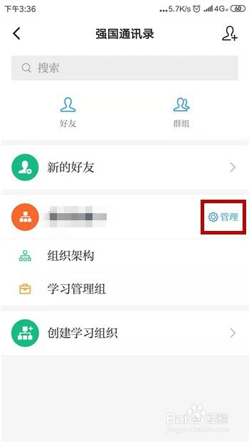 在强国通里打开通信录,然后找到我们的进修组织并点击【办理】。
