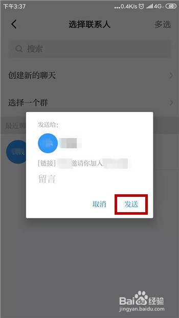 我们需要再次确认一下是否发送给该老友,确认就点击【发送】。
