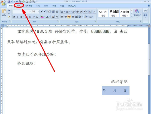 选中做后的日期内容,找到菜单栏“插入”选项卡单击
