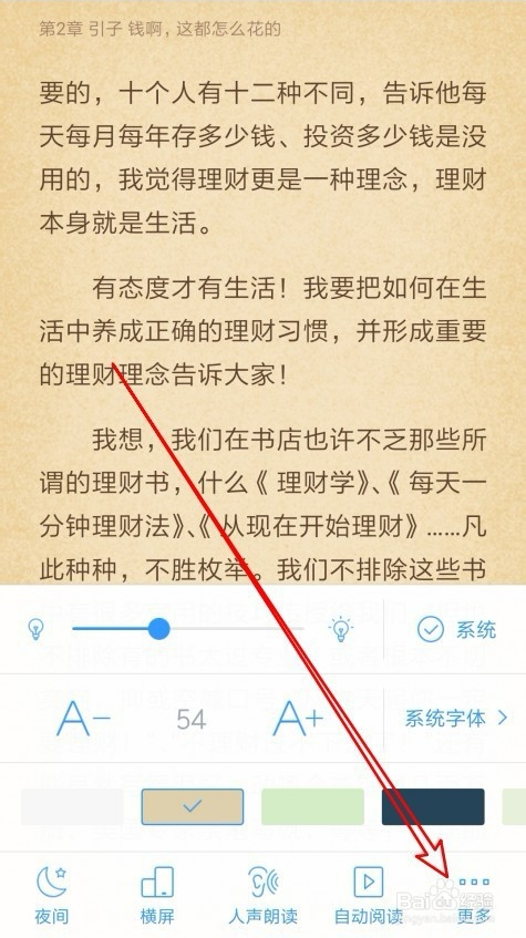 这时就会打开阅读页面,更多设置页面,在页面中找到点击屏幕左侧下翻页的设置项