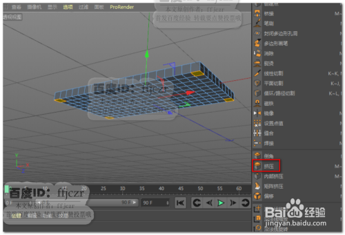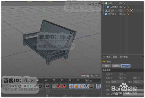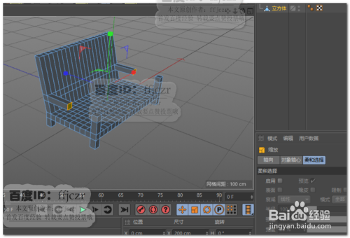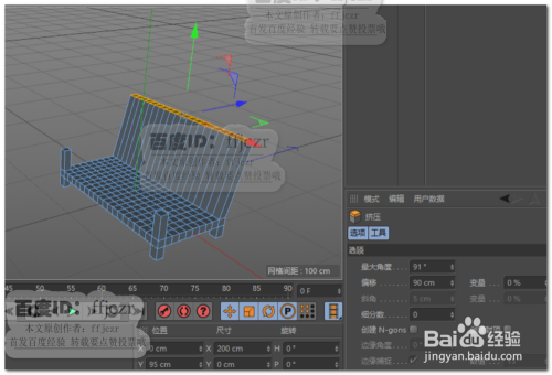 面模式中,选中多边形上概况后一排面,标的目的上挤压90CM;连结面处于选择状况,用移动号令将挤压的面标的目的后移动,使整体获得倾斜的靠背结果。