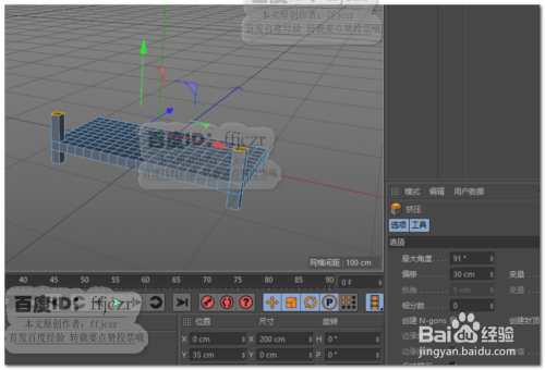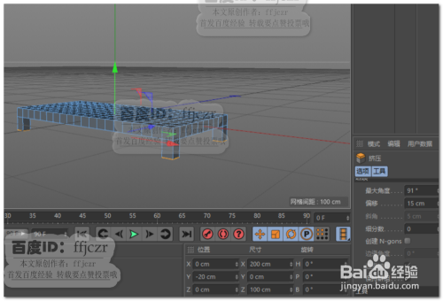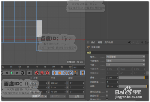 建立一个立方体,规格为200*10*100,分段为20*1*10.如图所示。