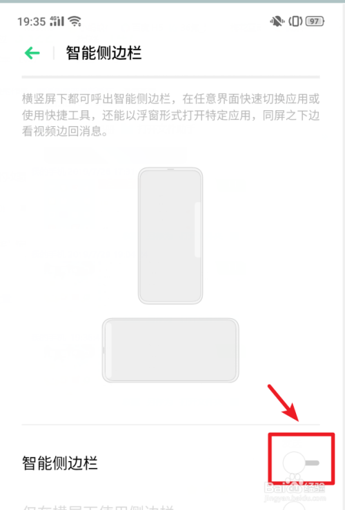 打开后即可利用智能侧边栏的功能,同时,也可以将仅在横屏下利用侧边栏的开关打开,打开后,智能侧边栏仅在横屏下才可以利用。