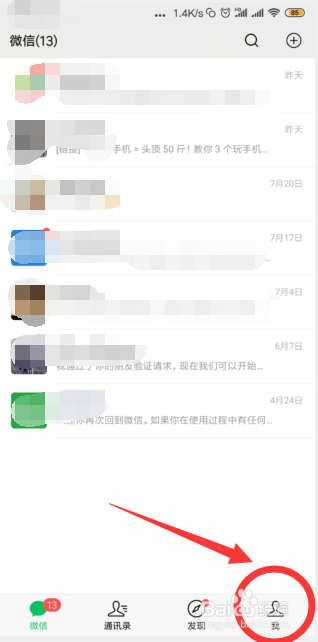 首先我们打开安卓手机,打开微信,找到【我】页面。