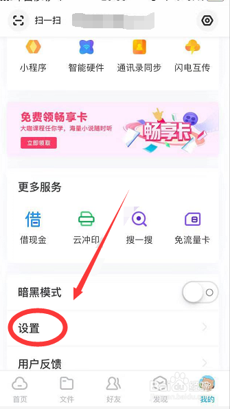 然后,在我的界面,划到下方点击设置,进入设置的界面