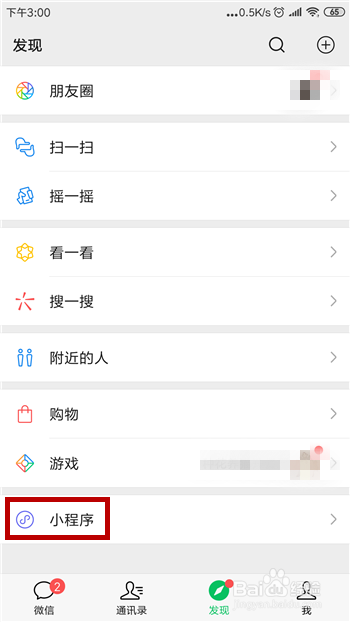 在发现界面中找到此中的【小程序】功能并点击,如图所示。