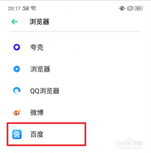 好比点击浏览器,进入后在更改界面,选择需要改换的默认浏览器。