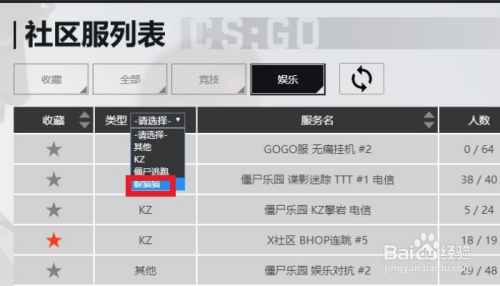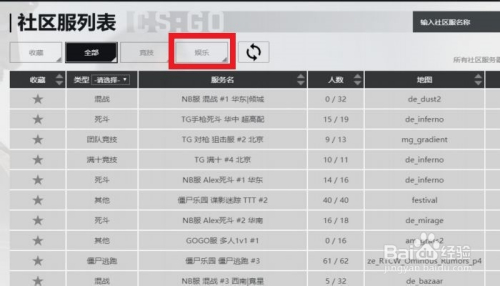 进入到社区办事器列表之后,我们点击上方的【娱乐】选项。