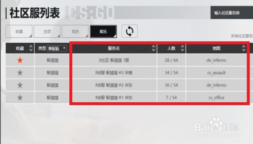 主动搜刮出当前所有开着的躲猫猫办事器之后,我们可以鄙人图这个界面中查看到每个办事器的名称、人数、地图等信息。