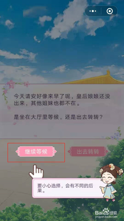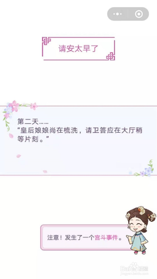 第一个宫斗事务是存候太早,我们要选择”继续等待“,究竟结果是新人,端方仍是得守