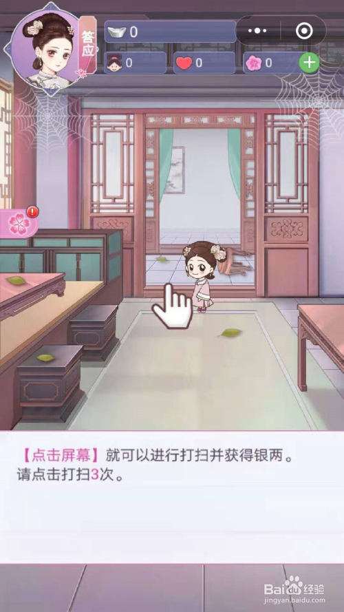 刚进入宫里,位份是承诺,还没有家丁,所以刚起头只能本身扫除,点击屏幕就可以进行扫除了,并且还能获得银两