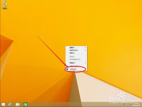 在打开的右键菜单中,选择“个性化”