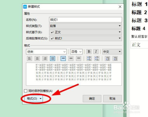 在“新建样式”对话框中进行字体、编号、段落等格局的设置