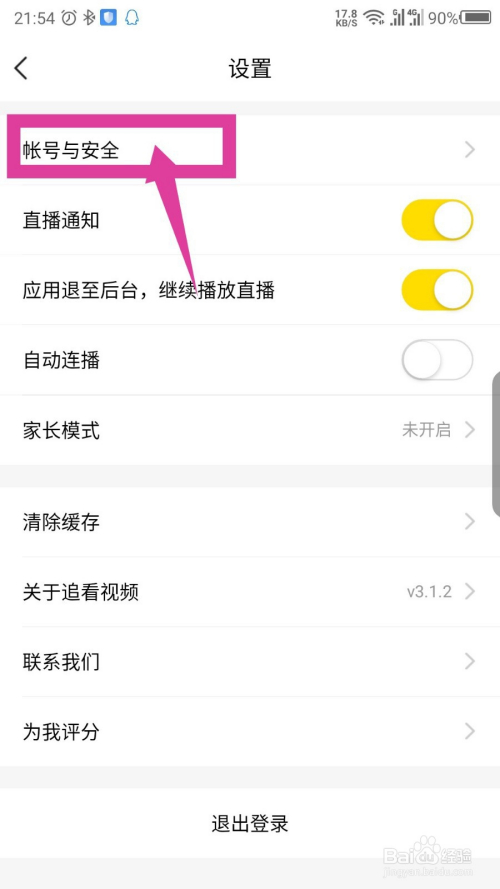 在设置里面,我们点击上面的账号与平安选项。如图所示