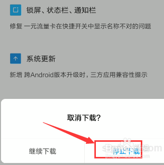 点击这个进度条,弹出一个遏制更新的选项,点击遏制更新即可。