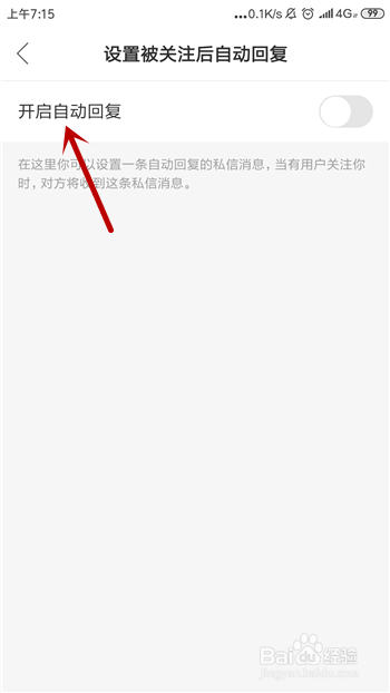 下方就会呈现【设置被存眷后主动答复】,我们需要点击它。