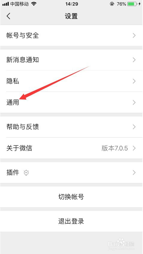进入微信的系统功能设置之后,选择此中的“通用”,如图所示。