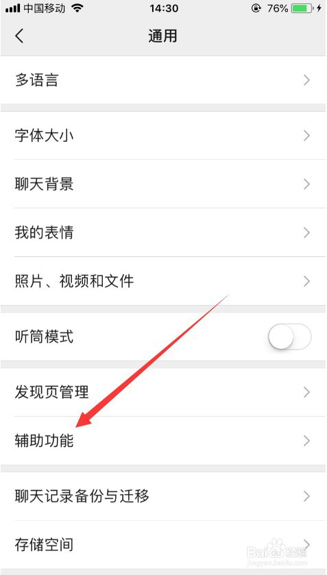 进入通用功能设置之后,选择此中的“辅助功能”,如图所示。