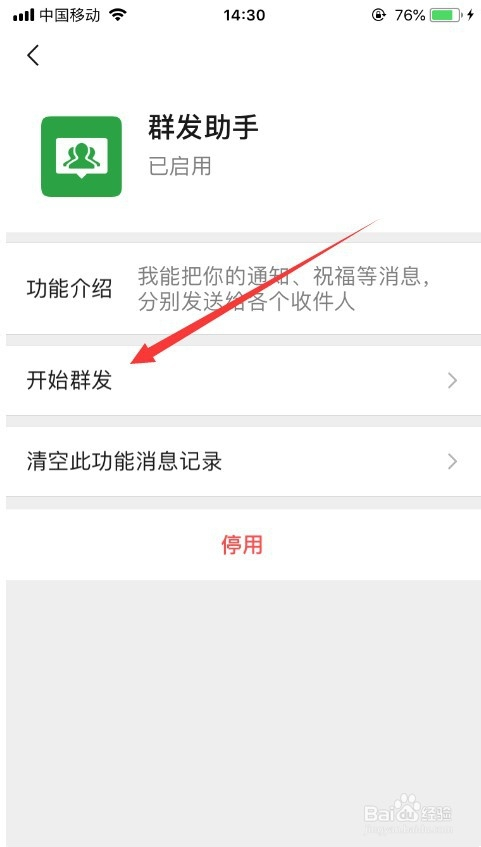 然后就可以进入群发助手的页面了,选择此中的“起头群发”,就可以开辟发送动静了,如图所示。