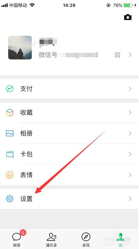 首先,打开并登录微信之后,进入微信,点击右下角的“我”进入微信小我中间,然后选择此中的“设置”,如图所示。