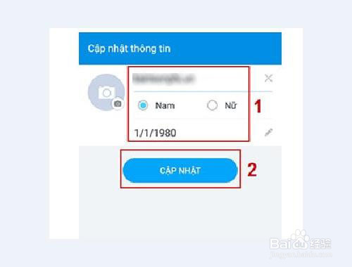 填写你的昵称,性别等小我信息(图1),然后单击“ 更新”(图2)。就建完Zalo帐户。