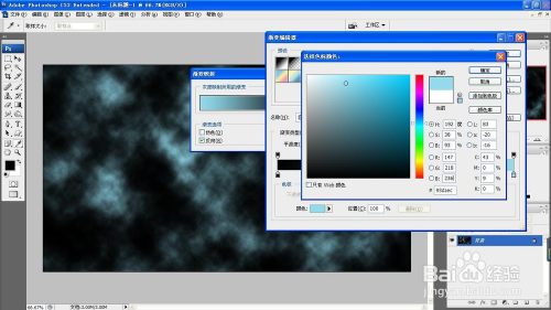 再次选择图像,调整,选择渐变映射,设置前景色到布景色为白色到浅蓝色的渐变颜色填充。