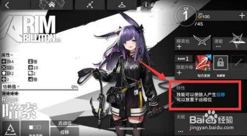 部门特种干员拥有位移技术,可操纵地形优势共同技术做到轻松击杀壮大的仇敌的目标。