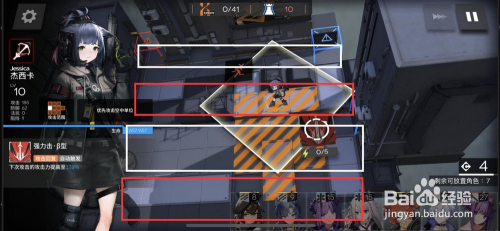 游戏中的地面分为两层,近卫类干员只能摆设在第一层(如白框标识表记标帜),术师、辅助、医疗类干员只能摆设在第二层(如红框标识表记标帜)。