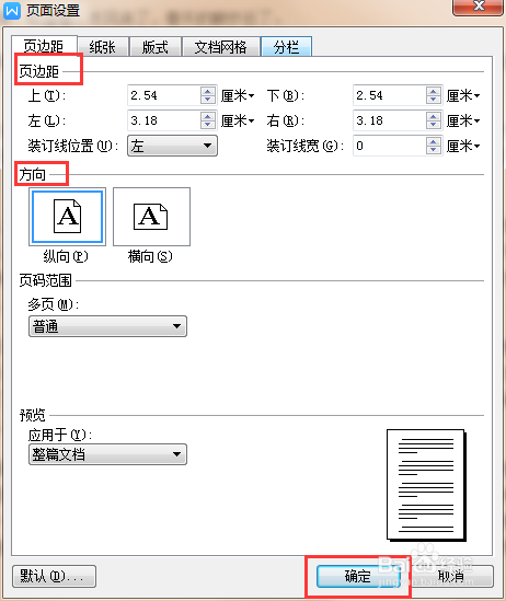 打开之后,填入所需要的上下摆布页边距,页面偏向。