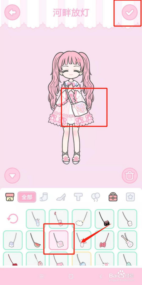 包包:最后背一个白加粉的爱心包包,当作功三星经由过程该关卡(河畔放灯)