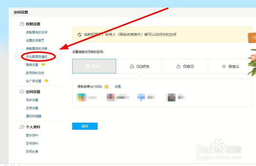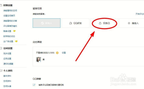 在“留言权限”——“谁能给我留言”中我们选择“仅本身”,只要单击一次,程序就会把本身的设置进行保留,今后本身QQ空间再也没有别人有权力来进行评论了。