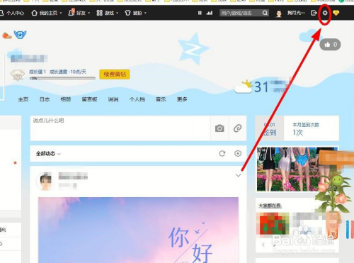 进入本身的Q空间之后,找到空间最上一排的一个“齿轮状”按钮,把光标放在上面,会弹出下拉菜单