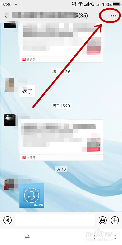 若是本身不想被一些已经插手的微信群信息骚扰,还因为某种原因不克不及退群,可以在群聊界面,找到右上角的“三个横点”图标单击